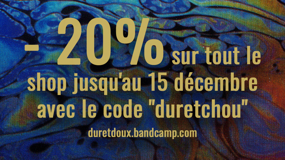 – 20 % sur tout le shop jusqu’au 15 décembre avec le code « duretchou »